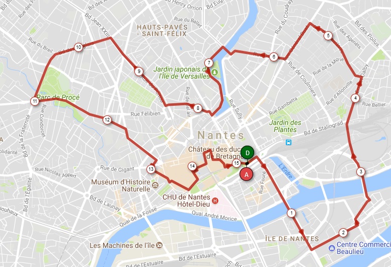 En rouge : 1ere partie jusqu'au pique-nique (départ 19h30)